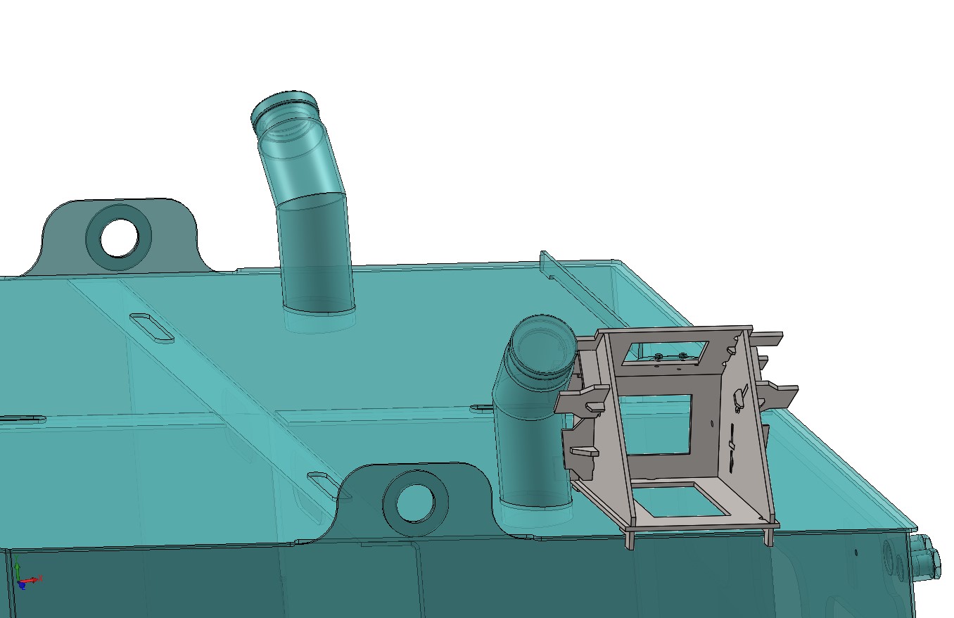 Two Filler necks protrude from a tank at an angle to the tank surface (one on each side) Jig J270 ensures that the filler necks are inserted at the correct angle, height, and rotation. The jig has inbuilt provision for installing the left-hand and right-hand filler necks using existing features on the tank to prevent incorrect use. It also uses cut outs to reduce its weight and provide convenient grab handles for the operator. Interlocking parts allow the jig to be assembled without the need for measuring or aligning critical parts.